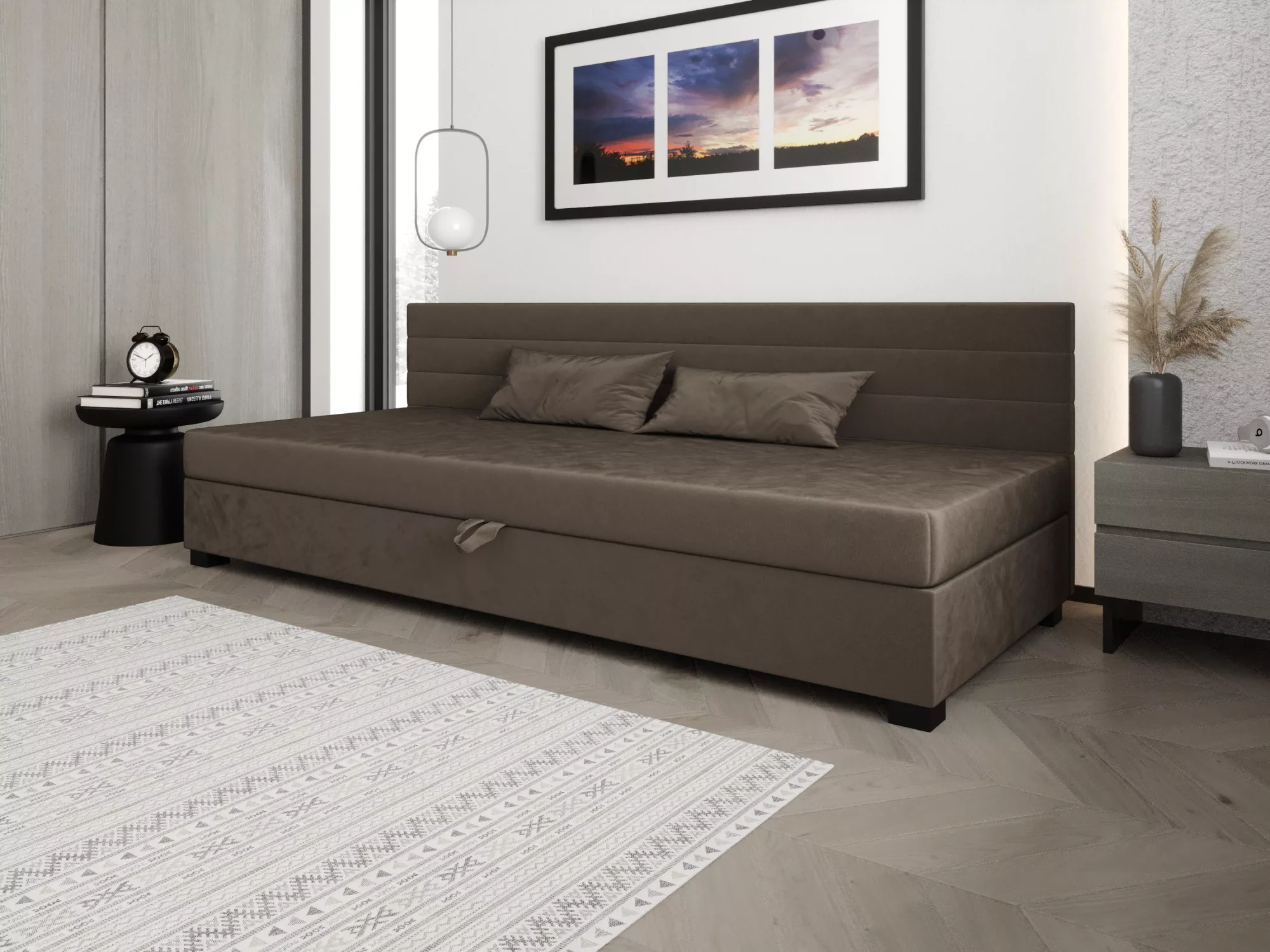 Čalúnená posteľ 100x195 KASANDRA BIZ 2 s úložným priestorom - tmavo hnedá