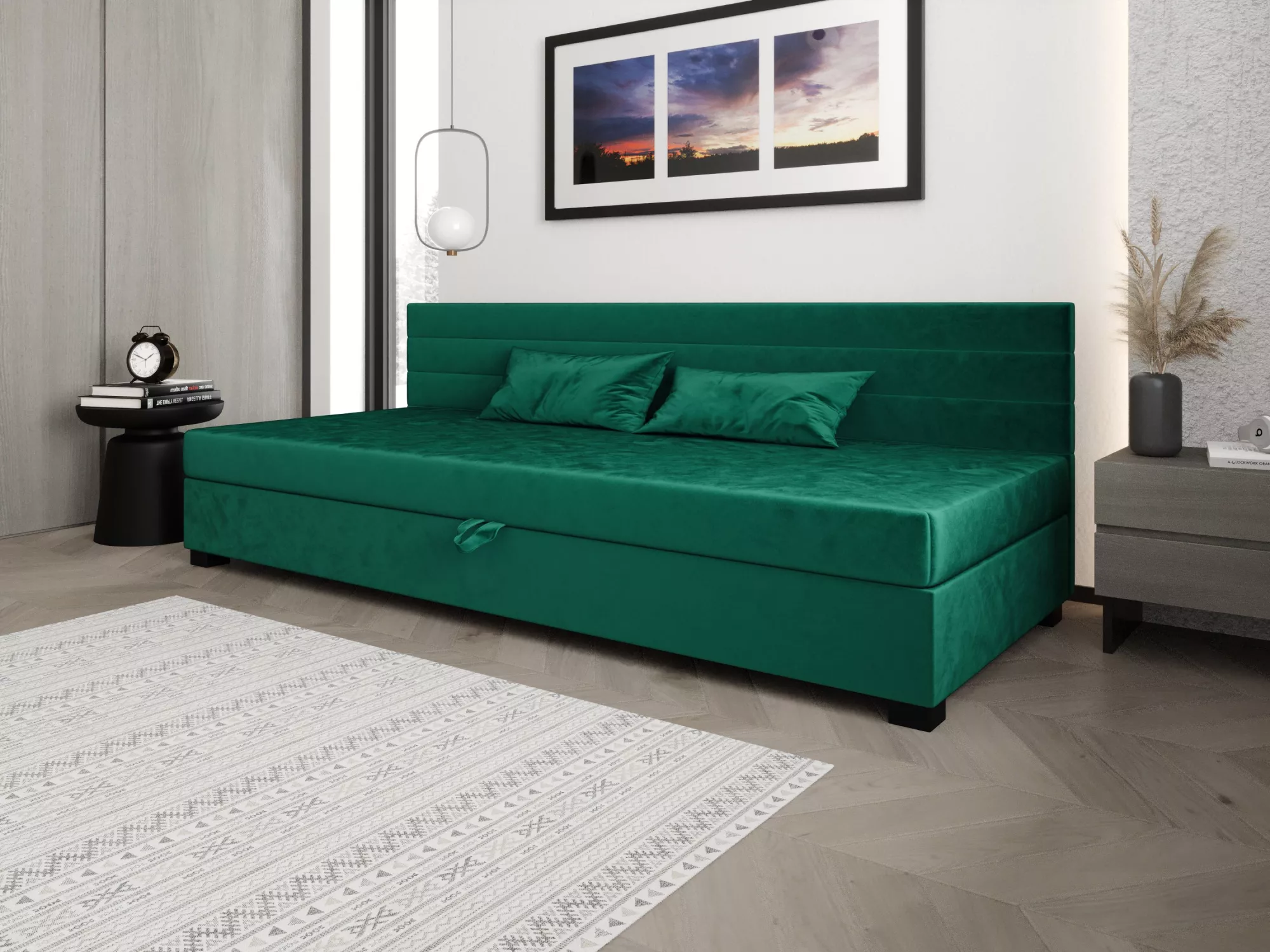 Čalúnená posteľ 90x195 KASANDRA BIZ 2 s úložným priestorom - zelená
