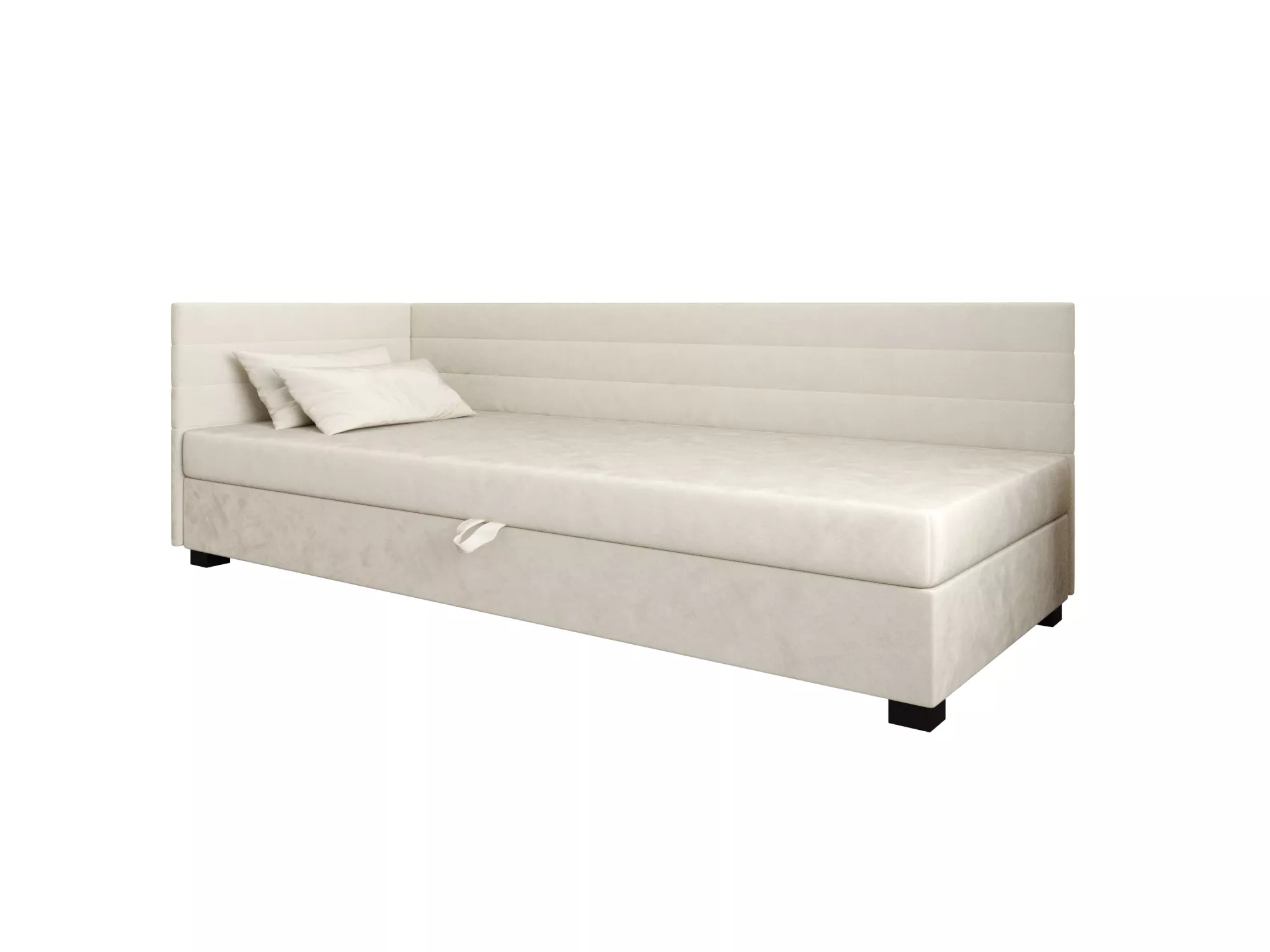 Čalúnená posteľ 100x195 KASANDRA PLUS 1 s úložným priestorom svojím jednoduchým minimalistickým dizajnom zapadne do každej študentskej izby. Vysoké čalúnené čelo zabráni poškriabaniu a zašpineniu steny.