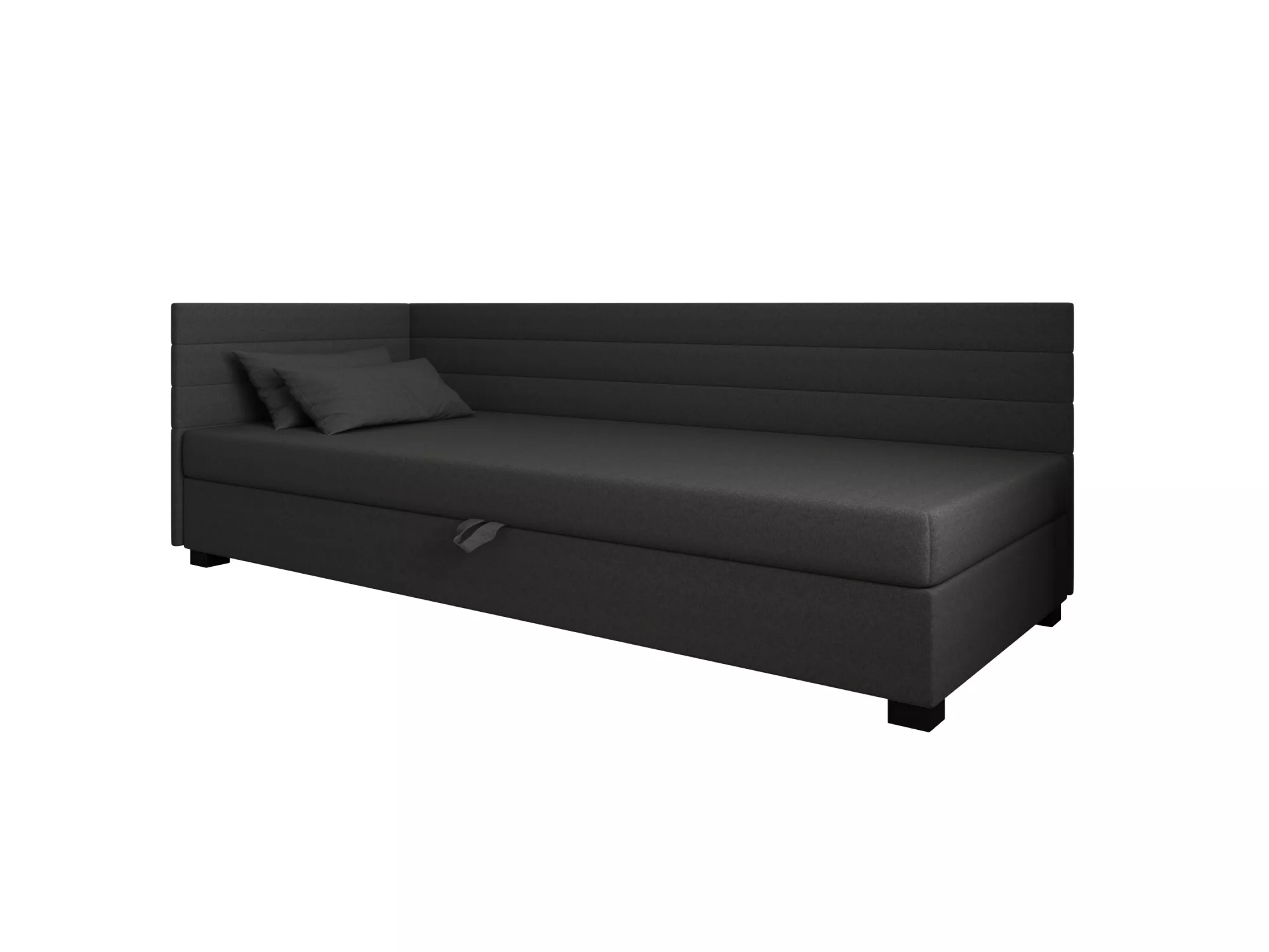Čalúnená posteľ 80x195 KASANDRA PLUS 2 s úložným priestorom svojím jednoduchým minimalistickým dizajnom zapadne do každej študentskej izby. Vysoké čalúnené čelo zabráni poškriabaniu a zašpineniu steny.