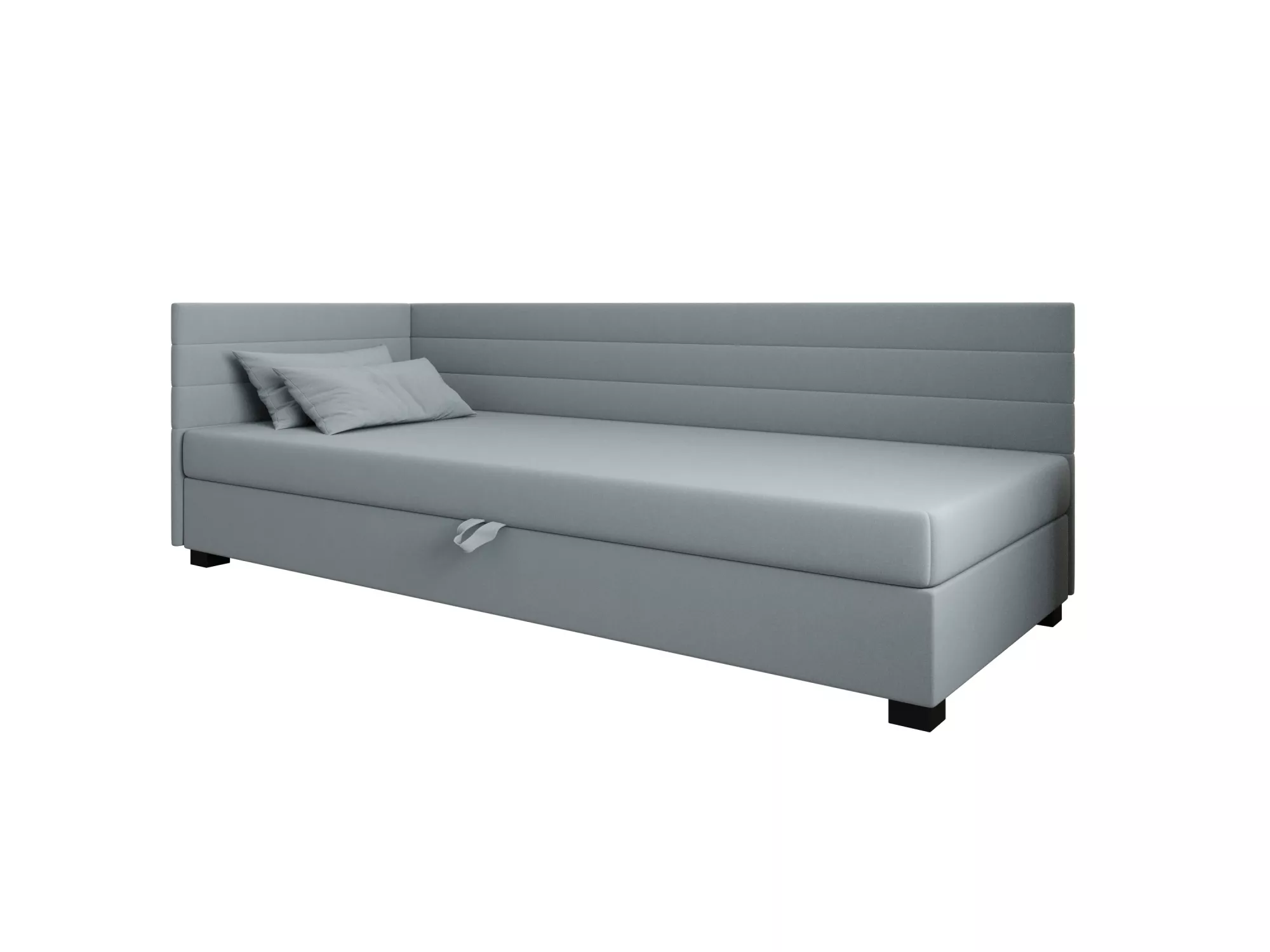 Čalúnená posteľ 90x195 KASANDRA PLUS 2 s úložným priestorom svojím jednoduchým minimalistickým dizajnom zapadne do každej študentskej izby. Vysoké čalúnené čelo zabráni poškriabaniu a zašpineniu steny.