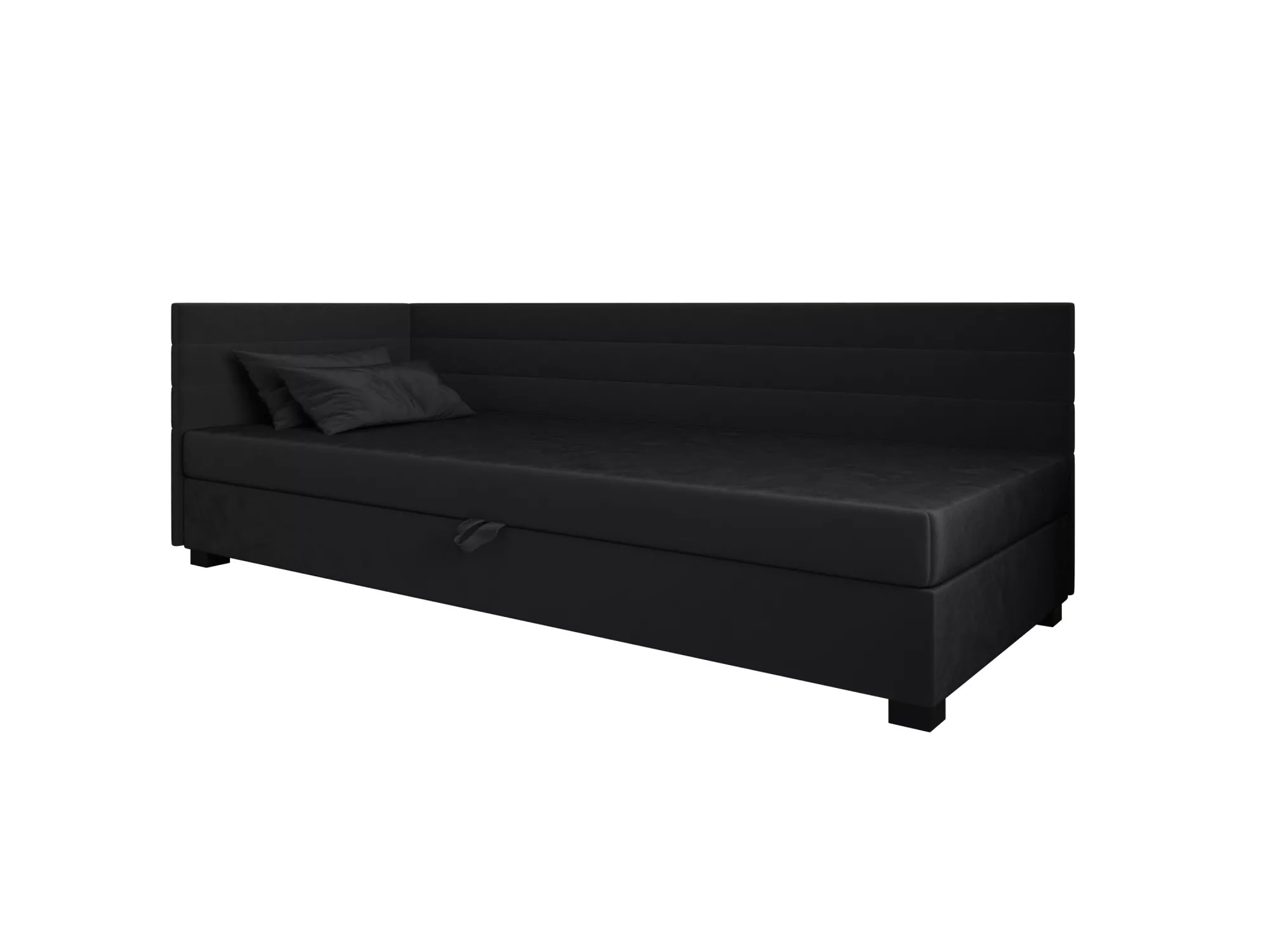Čalúnená posteľ 110x195 KASANDRA PLUS 2 s úložným priestorom svojím jednoduchým minimalistickým dizajnom zapadne do každej študentskej izby. Vysoké čalúnené čelo zabráni poškriabaniu a zašpineniu steny.