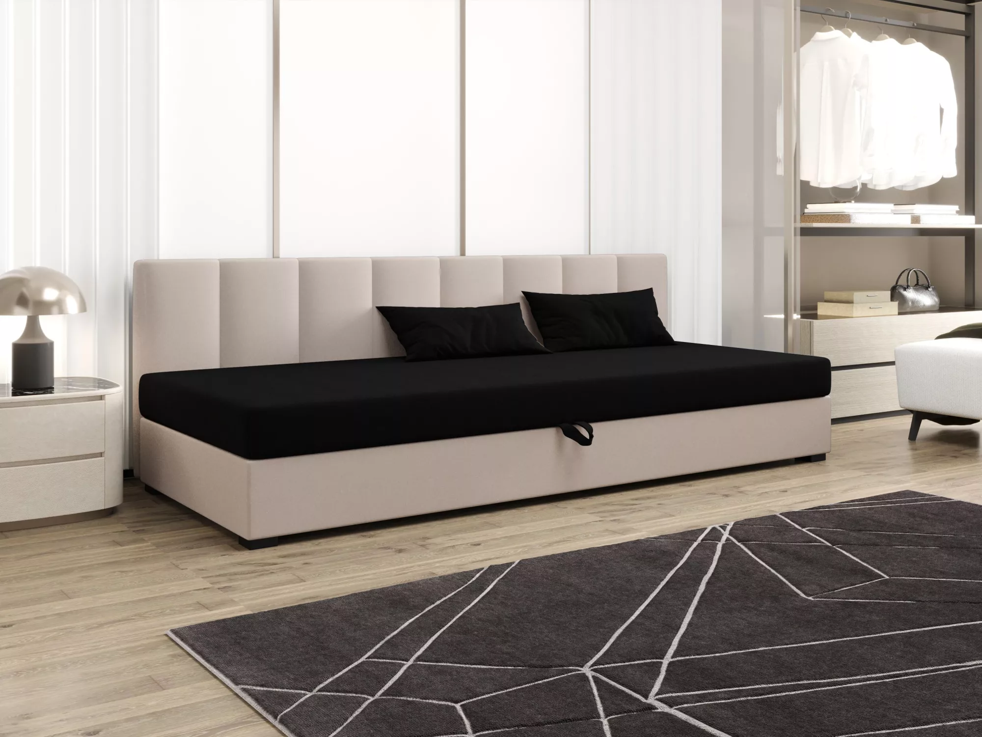 Súčasťou postele je zabudovaný matrac a úložný priestor.