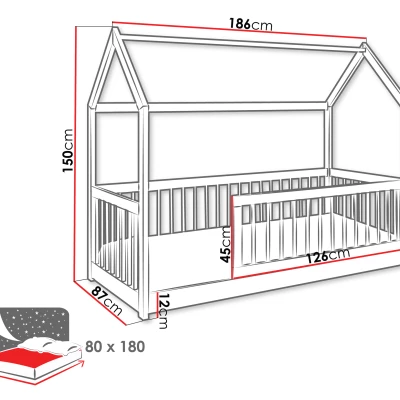 Domčeková posteľ BALLARD zaistí vášmu dieťaťu bezpečný a pohodlný spánok vďaka pevnej konštrukcii z masívnej borovice a bezpečnostným zábranám proti pádu. Spacia plocha 80x180 cm je ideálna pre odpočinok aj detské sny, zatiaľ čo štýlový dizajn postele oživí každú detskú izbu.