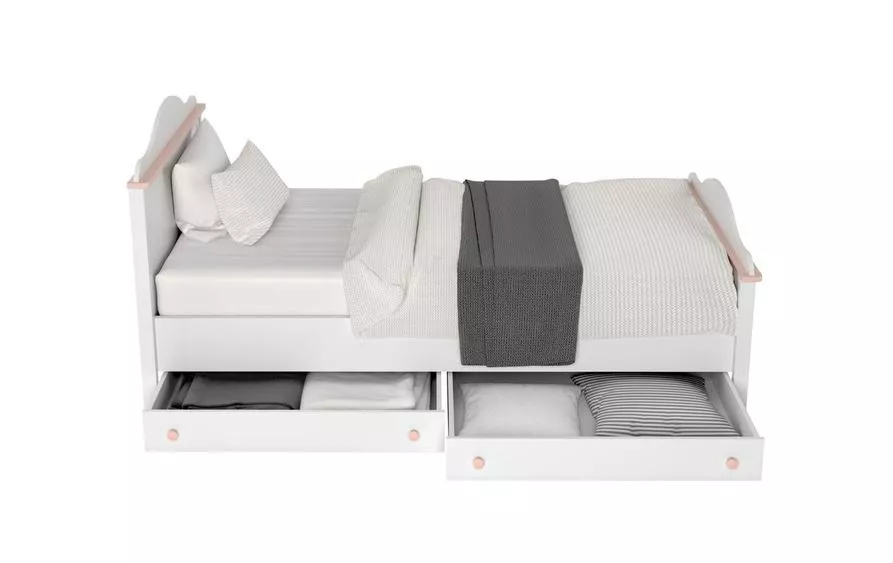 Detská posteľ s matracom a zásuvkami 90×200 LEGUAN - biela / ružová