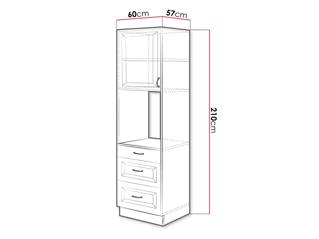 Praktická vysoká skriňa pre vstavanú rúru FRYZIA šetrí miesto a zlepšuje prehľadnosť v kuchyni. Skrinka s dvierkami a 3 rôzne vysoké šuplíky chránia uložené predmety pred prachom a mastnotou. Nadčasový dizajn a kvalitné prevedenie robia z vysokej skrine perfektnú voľbu pre každú domácnosť.