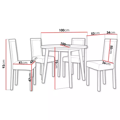 - okrúhly jedálenský stôl: 100/75/100 cm