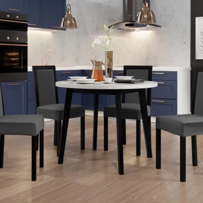 Zostava 4+1 do jedálne SALUSIA 1 - biela / čierna / oceľová