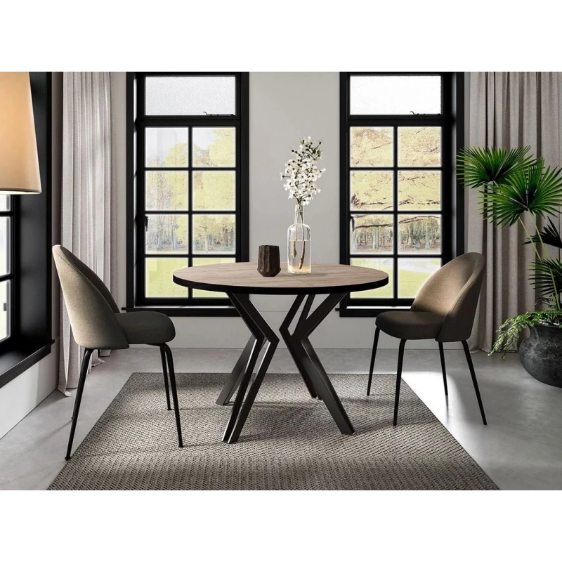Okrúhly rozkladací jedálenský stôl HILLSBORO - čierny / dub sonoma
