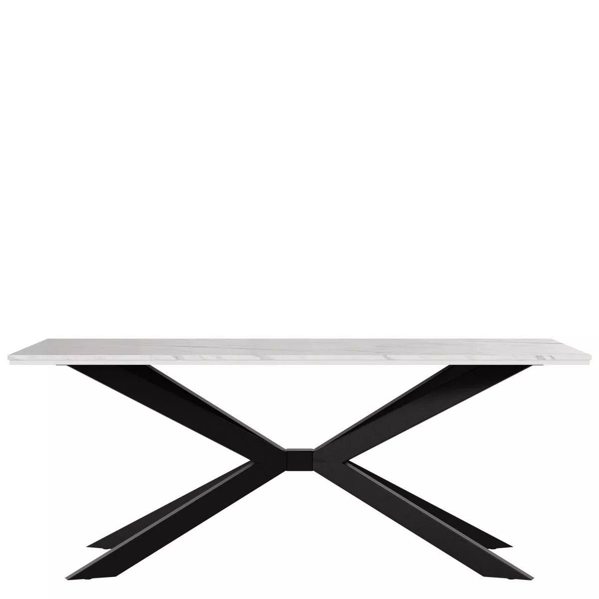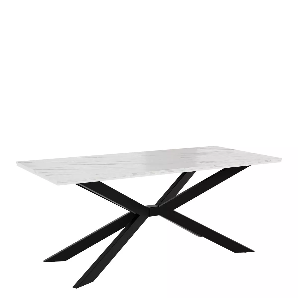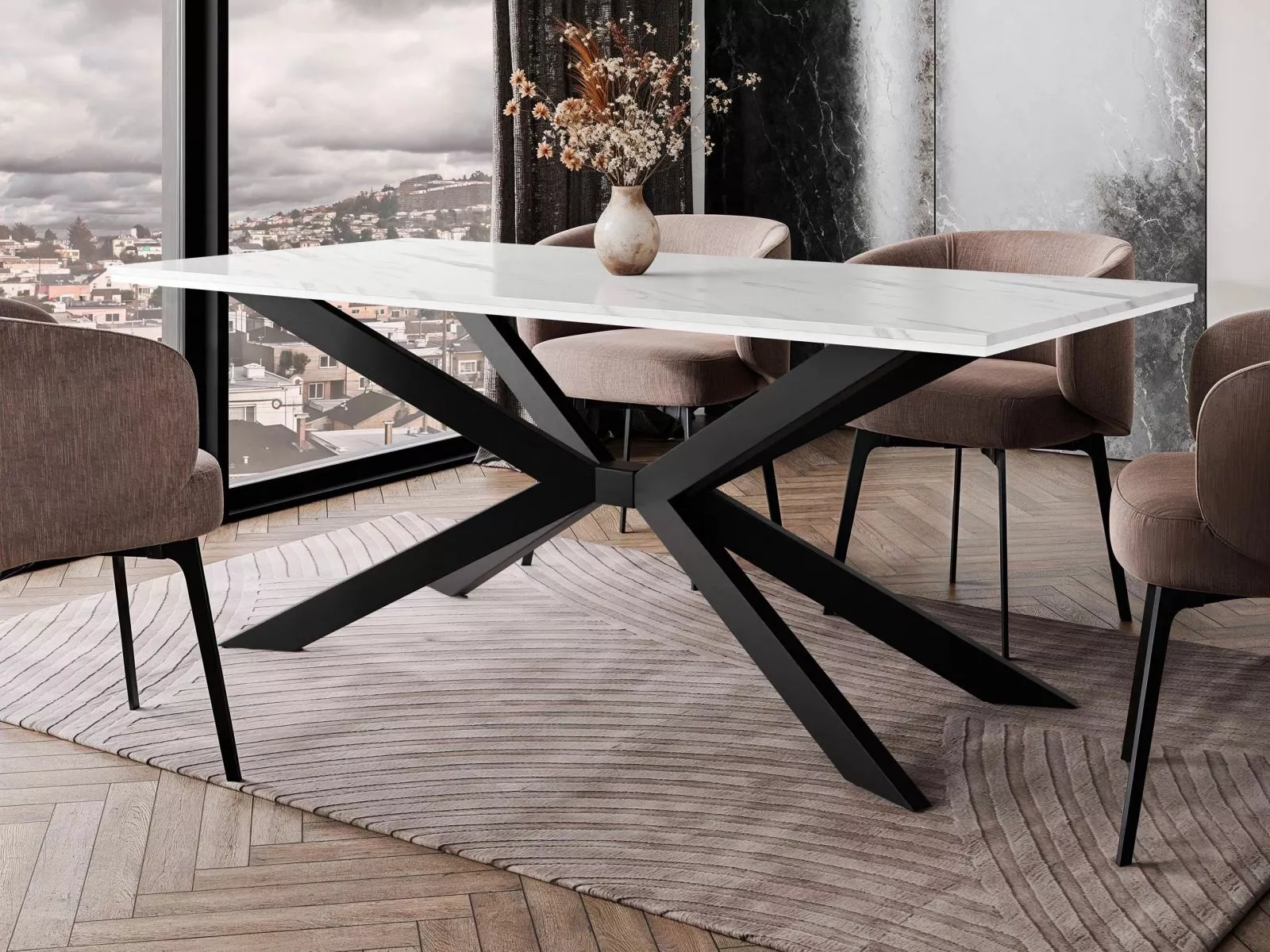 Dizajnový jedálenský stôl 190x90 LYNNWOOD - mramor biely / lesklý biely / čierny