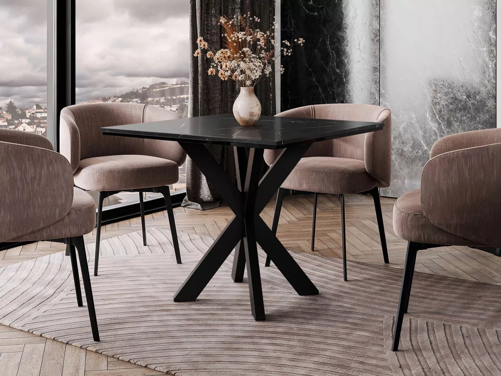 Dizajnový jedálenský stôl 90x90 MUKILTEO - mramor black royal / lesklý čierny / čierny