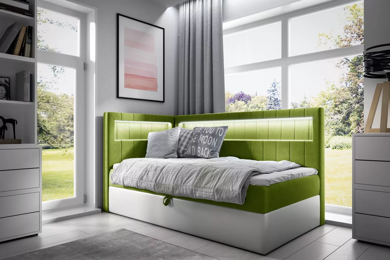 Jednolôžková posteľ 100x200 KISHA 3 - zelená / biela, otváranie z boku + topper ZDARMA