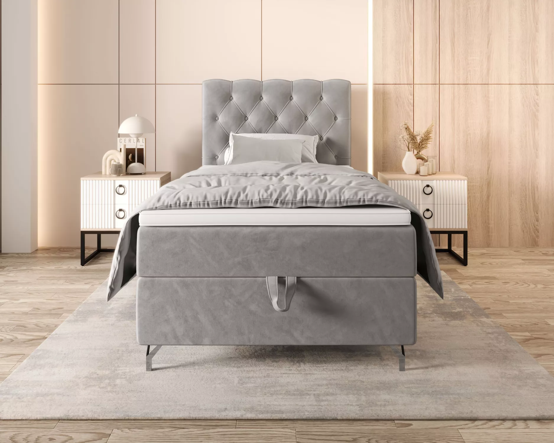 Čalúnená boxspringová posteľ 100x200 ADRIA 2 - svetlo šedá