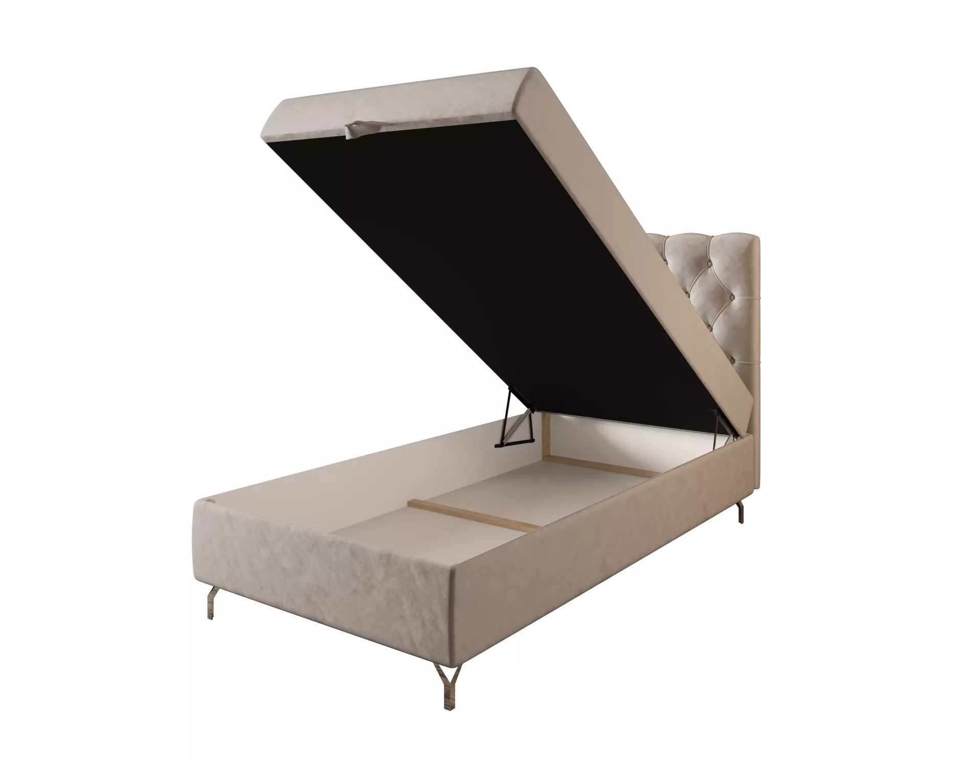 Súčasťou postele je zabudovaný matrac a úložný priestor. Posteľ dodávame bez vyobrazeného toppera.