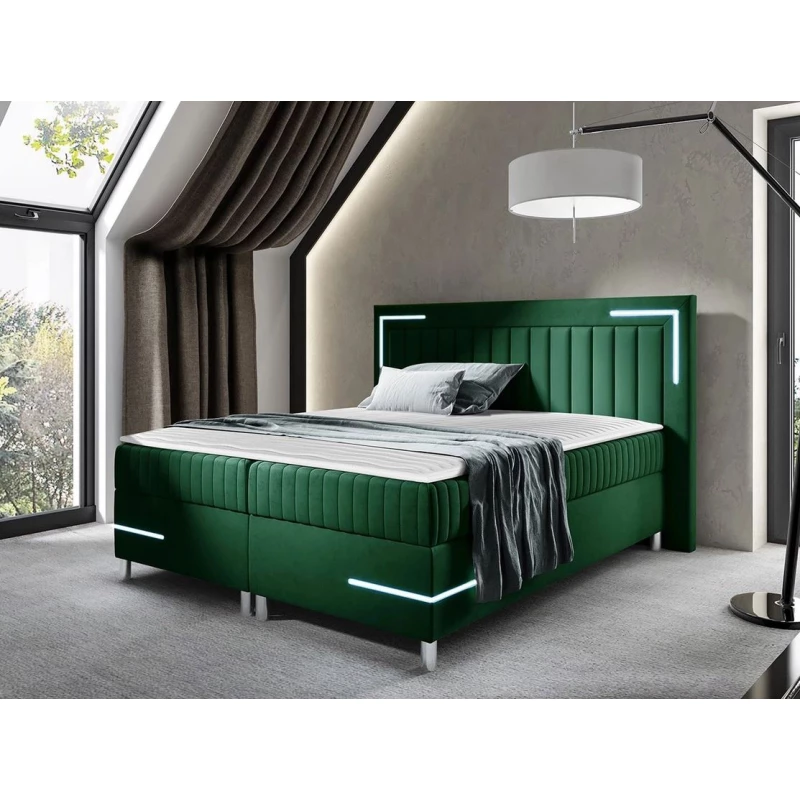 Jednolôžková kontinentálna posteľ 120x200 BELIA 1 - zelená + LED a topper ZDARMA