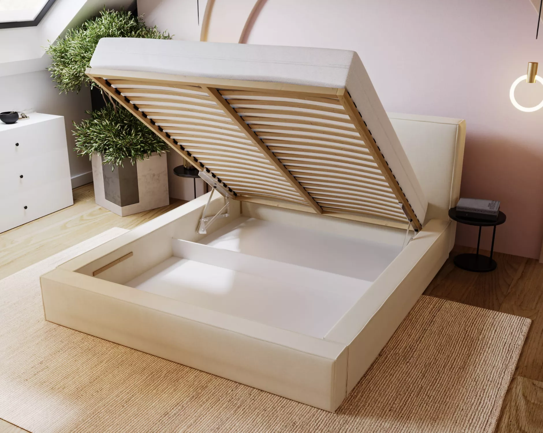 Súčasťou postele je rošt. Vhodné matrace na dokúpenie nájdete v sekcii Odporúčame prikúpiť.