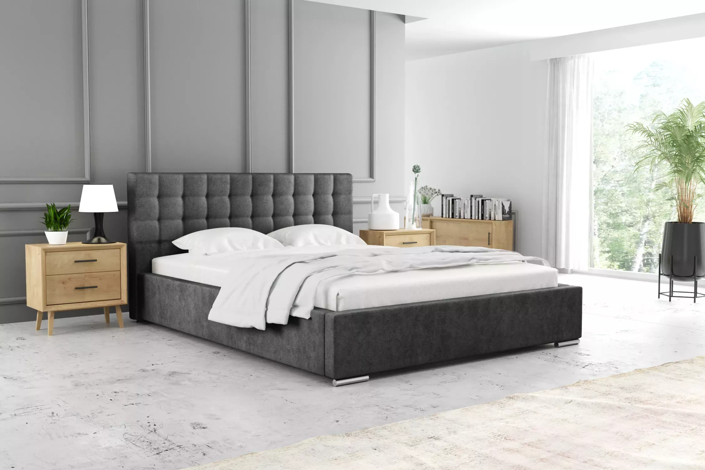 Jednolôžková posteľ 120x200 LAURINDA 2 s úložným priestorom - tmavo šedá