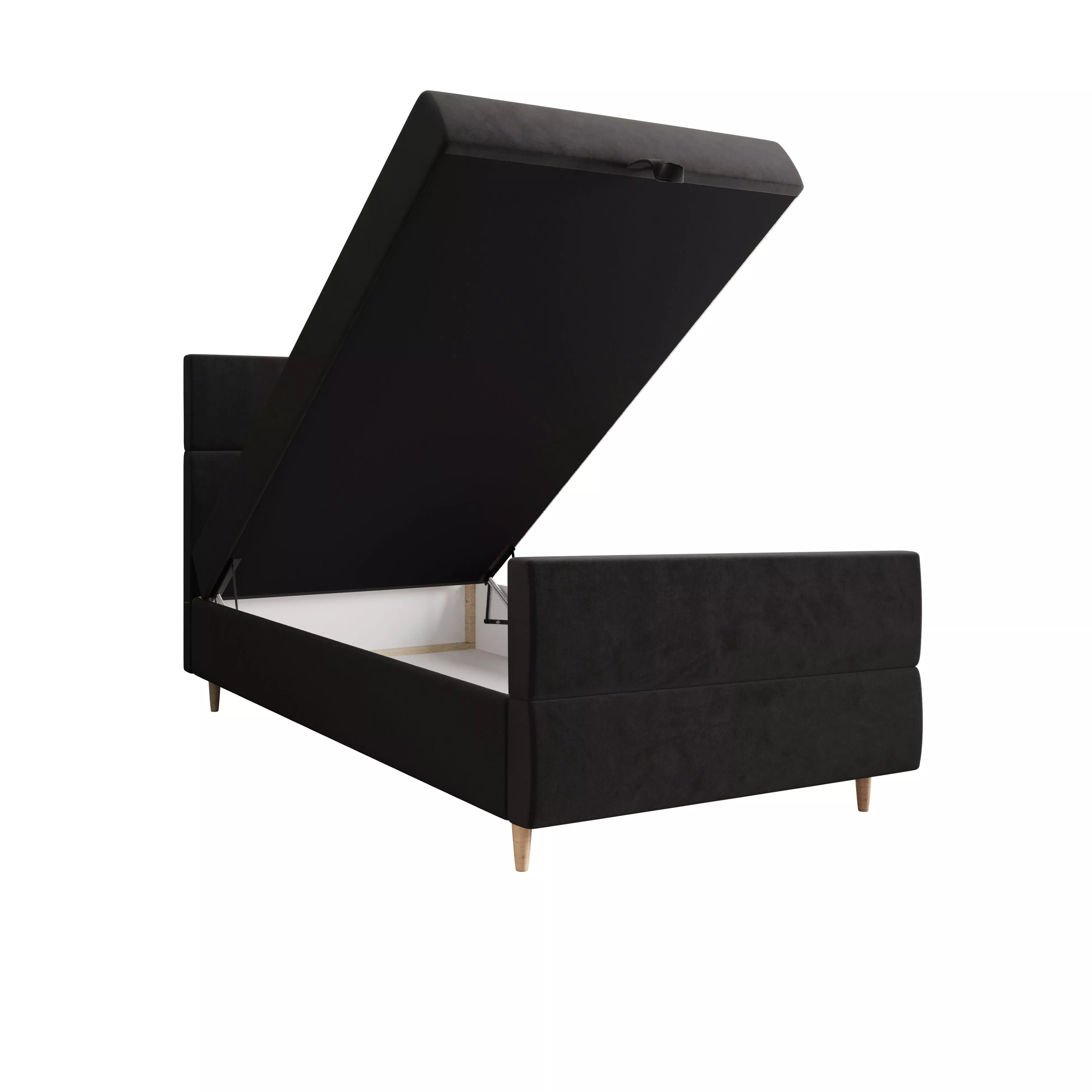 Súčasťou postele je zabudovaný matrac a úložný priestor. Posteľ dodávame bez vyobrazeného toppera. Vhodné modely na dokúpenie nájdete v sekcii Odporúčame prikúpiť.