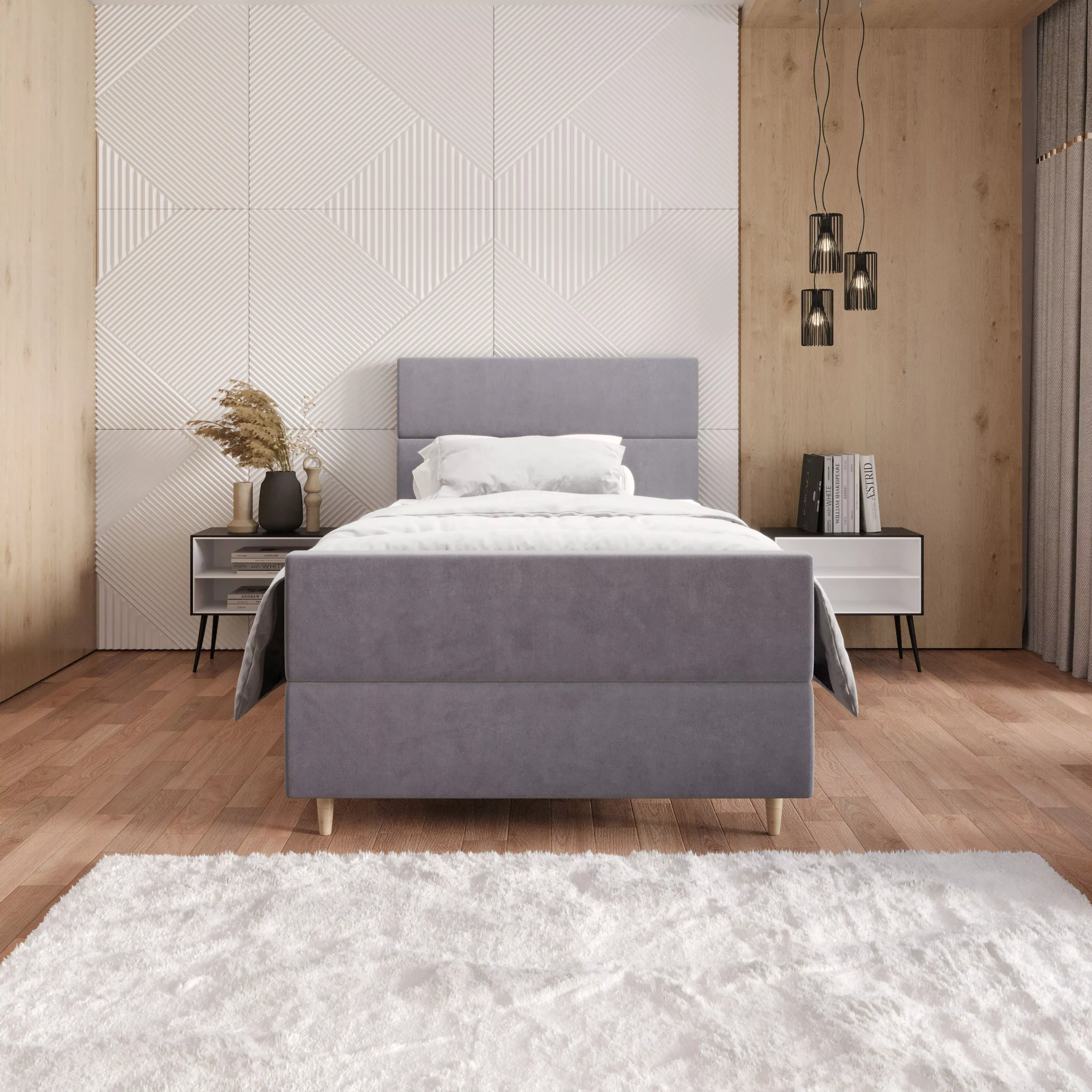 Kontinentálna jednolôžková posteľ 120x200 ANGELES PLUS COMFORT 1 sa hodí do všetkých moderných študentských izieb. Čalúnené čelo zamedzí poškriabaniu a zašpineniu steny.
