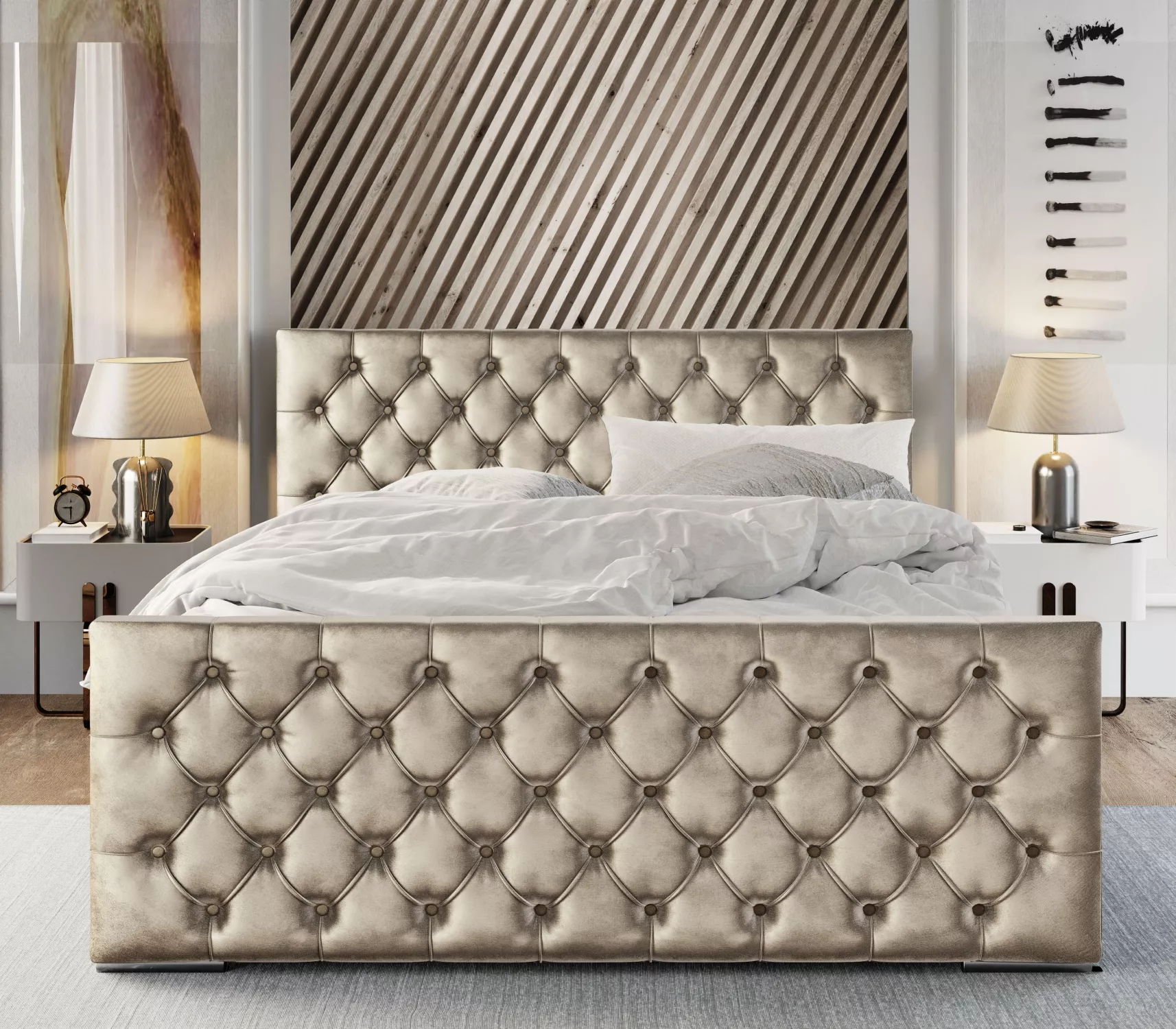 Elegantná čalúnená posteľ 90x200 ROSEMARIE 1 s úložným priestorom - béžová