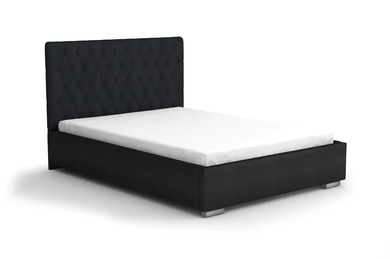 Jednolôžková posteľ 120x200 SIRENA 1 s prešívaným čelom zdobeným gombíkmi sa stane dominantou každého priestoru. Boky postele sú potiahnuté čiernou eko kožou. Kovové strieborné nožičky dodávajú posteli atraktívny dizajn.