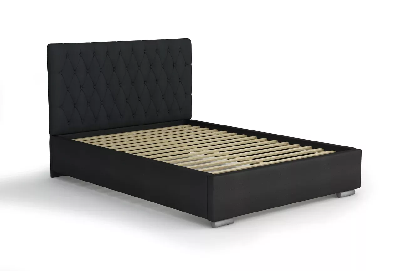 Jednolôžková posteľ 120x200 SIRENA 1 s prešívaným čelom zdobeným gombíkmi sa stane dominantou každého priestoru. Boky postele sú potiahnuté čiernou eko kožou. Kovové strieborné nožičky dodávajú posteli atraktívny dizajn.