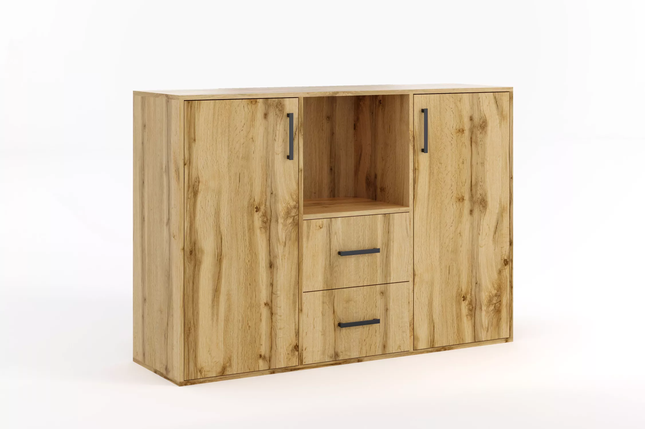 Kombinovaná komoda KATINE sa vďaka nadčasovému dizajnu hodí do každej modernej miestnosti. Komoda je vybavená 2 praktickými šuplíkmi a 4 uzavretými policami na drobnosti a ďalšie predmety.