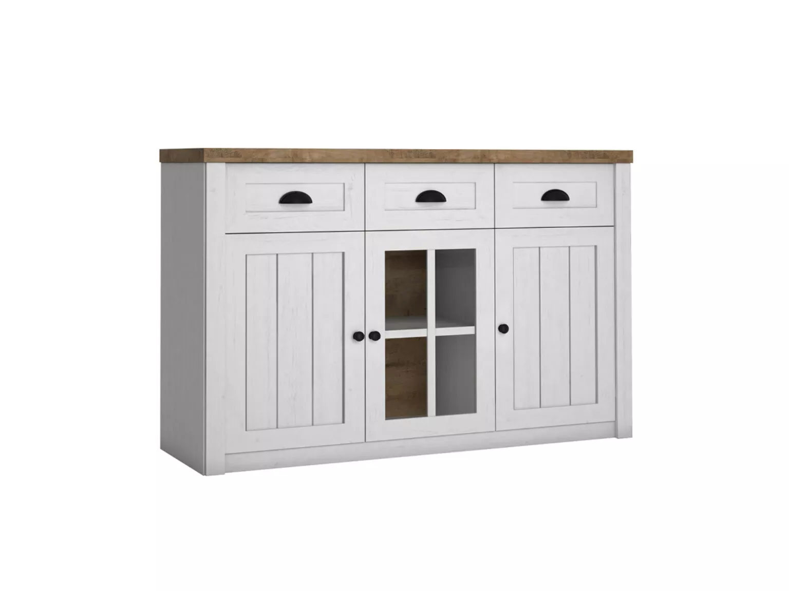 Presklená kombinovaná komoda MARIONA sa hodí do všetkých moderných interiérov v rustikálnom štýle. Kombinácia skriniek a praktických zásuviek ponúka dostatok priestoru na uloženie vašich vecí.