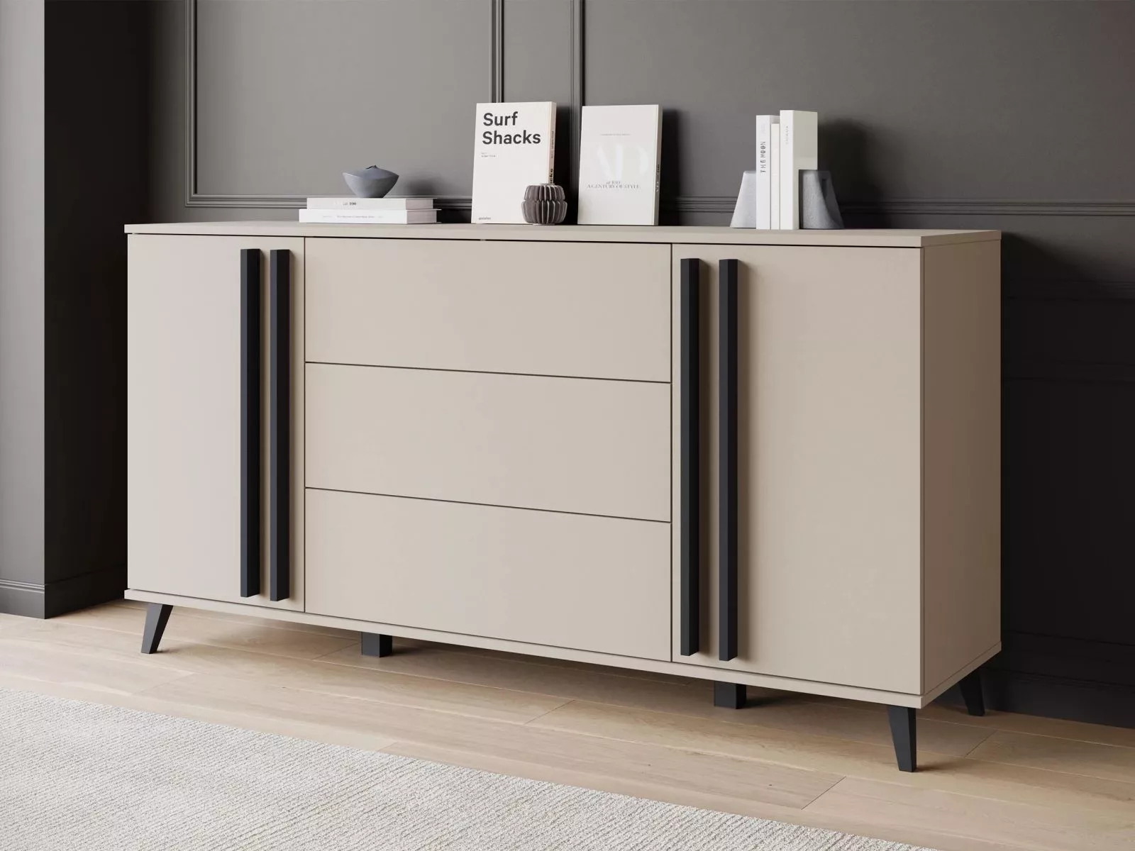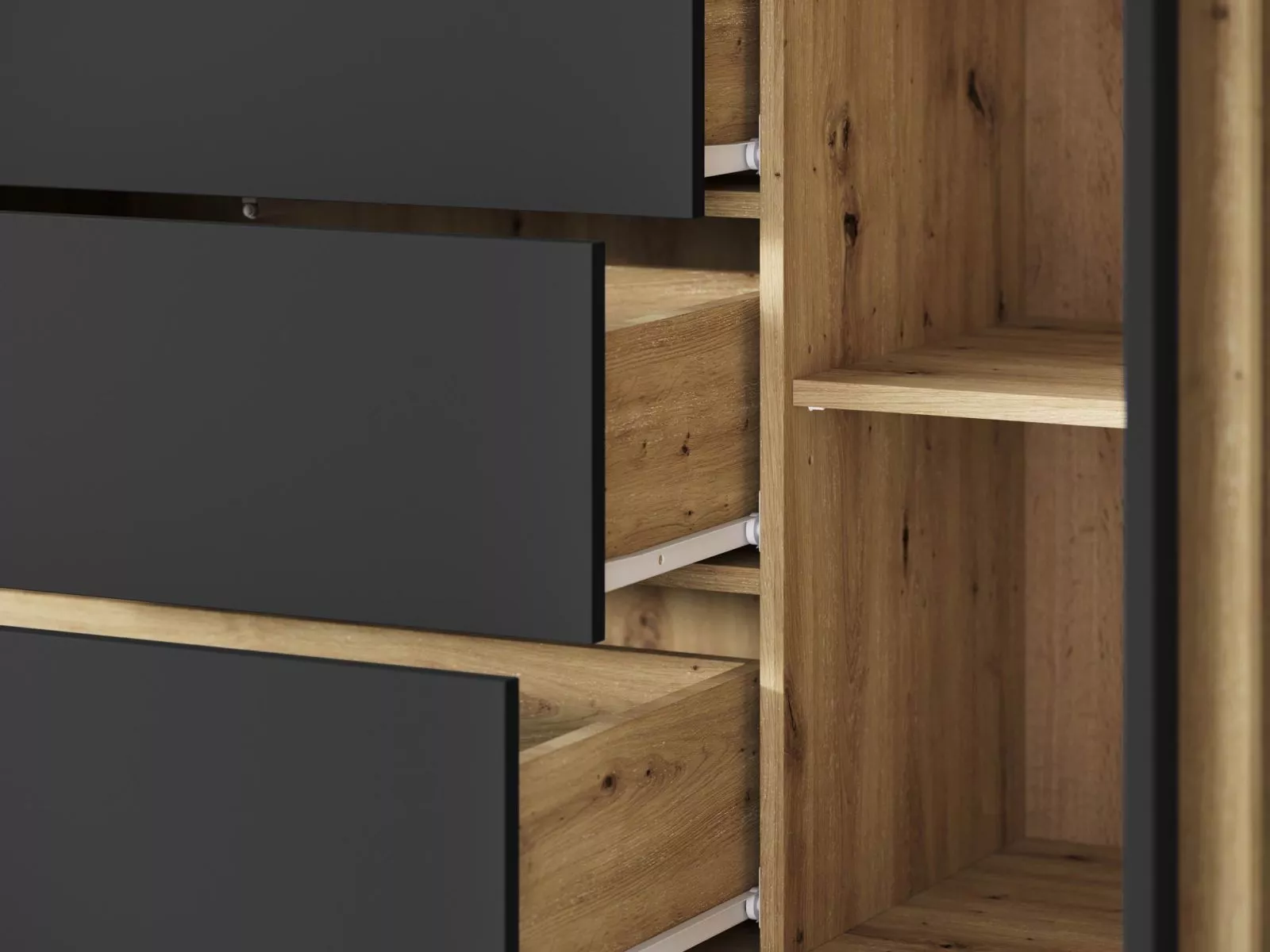 Zaobstarajte si širokú kombinovanú komodu POULSBO, ktorá premení každý interiér na prehľadný a útulný priestor. Uzavreté priehradky a hlboké zásuvky poskytnú dosť miesta na oblečenie, dokumenty aj drobnosti každodennej potreby. Vďaka premyslenému členeniu zostane všetko vždy na svojom mieste. Jednoduchý dizajn s čistými líniami sa hodí do spálne, obývacej izby alebo chodby.
