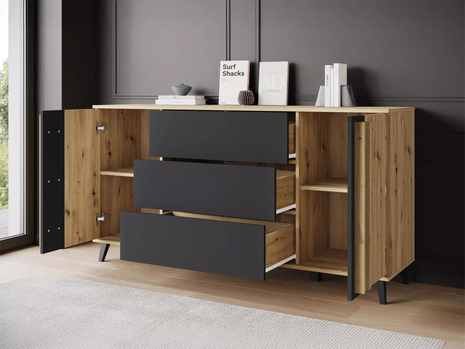 Široká kombinovaná komoda POULSBO - congo / čierna grafitová