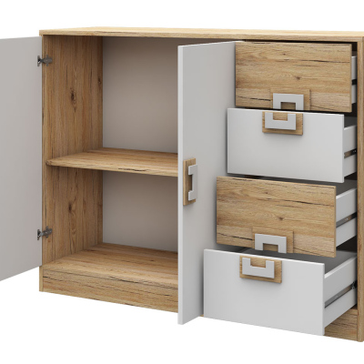 Kombinovaná komoda ALBA - dub svetlý / biela / tyrkysová