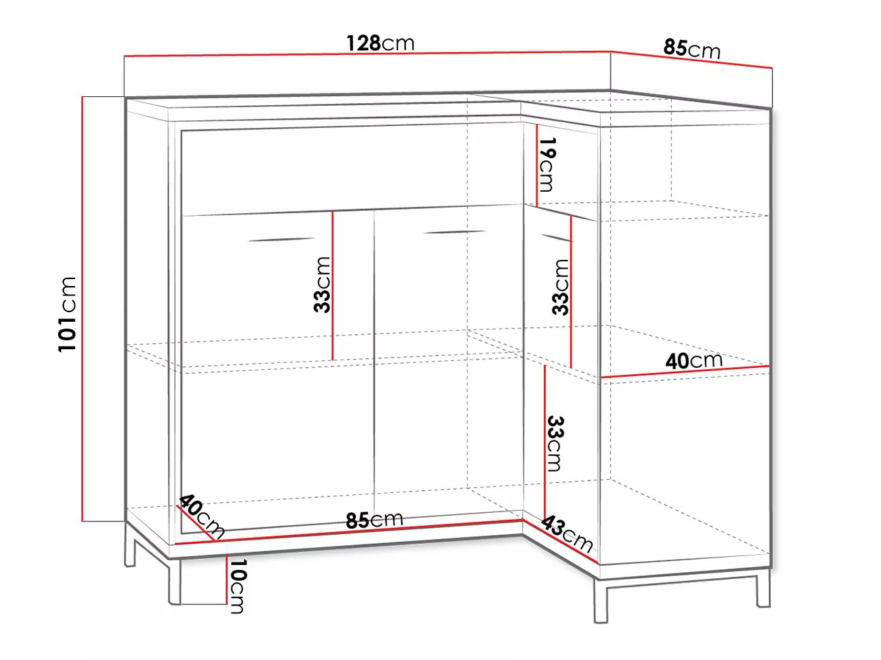 Kombinovaná rohová komoda na nožičkách SUCRE 4 nájde svoje využitie v každom modernom interiéri. V priestrannej skrinke a zásuvkách si môžete jednoducho uložiť akékoľvek predmety vrátane študijného materiálu či sezónneho oblečenia.