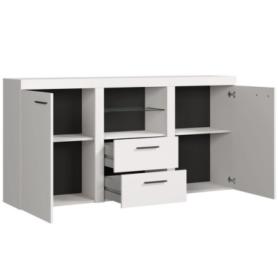 Štýlová komoda Pumba osloví vyznávačov minimalizmu. Komoda je vyrobená z laminovanej dosky, originálny vzhľad nábytku umocňuje sklenená polica.
