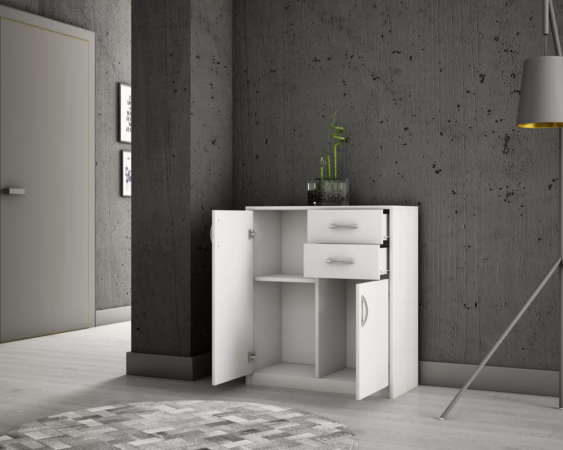 Komoda IBOJA je veľmi elegantná a zároveň praktická vďaka dvierkam a šuplíkom. Dostatočne veľký úložný priestor využijete na uloženie oblečenia či iných vecí.