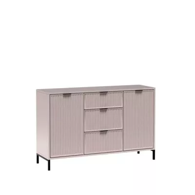 Komoda CORA je premyslenou kombináciou estetiky a funkčnosti. Je vybavená 3 priestrannými zásuvkami a 2 uzavretými skrinkami s policou. Vysoké kovové nohy dodávajú komode ľahkosť, a zároveň uľahčujú udržiavanie poriadku pod komodou.
