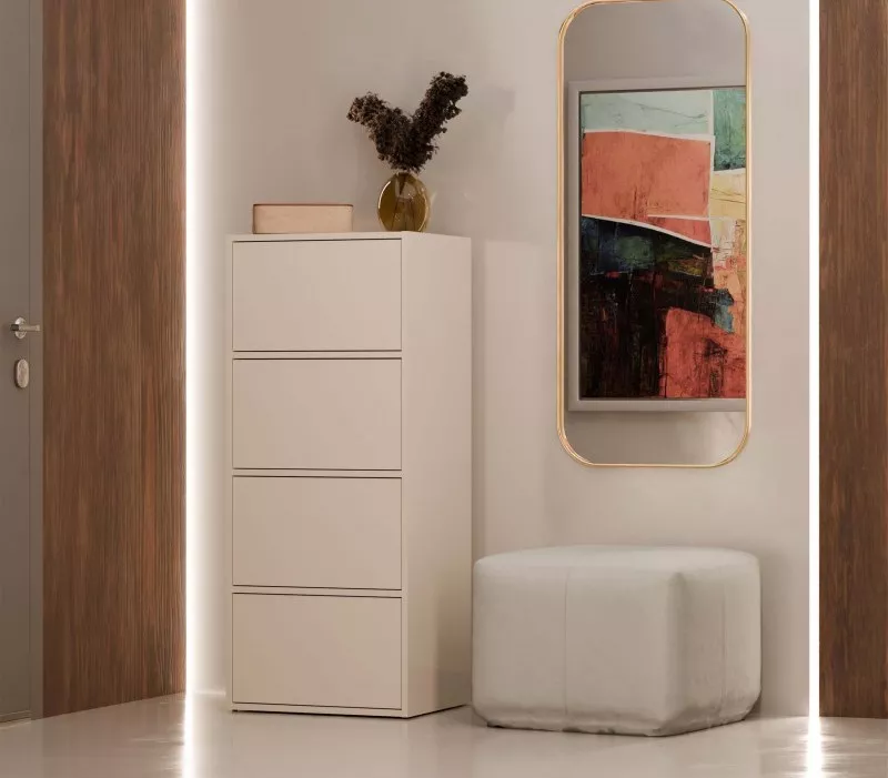 Úzka komoda s dvierkami ATALLA vyniká čistými líniami a minimalistickým vzhľadom. Komoda ponúka dostatok priestoru na uloženie všetkých potrebných vecí. Dvierka majú systém otvárania TIP-ON, čo spríjemňuje každodenné používanie.