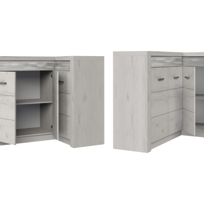Rohová komoda CHALAPATA nájde svoje využitie v každom modernom interiéri. V priestranných skrinkách je možné jednoducho ukladať akékoľvek predmety vrátane študijného materiálu či sezónneho oblečenia.