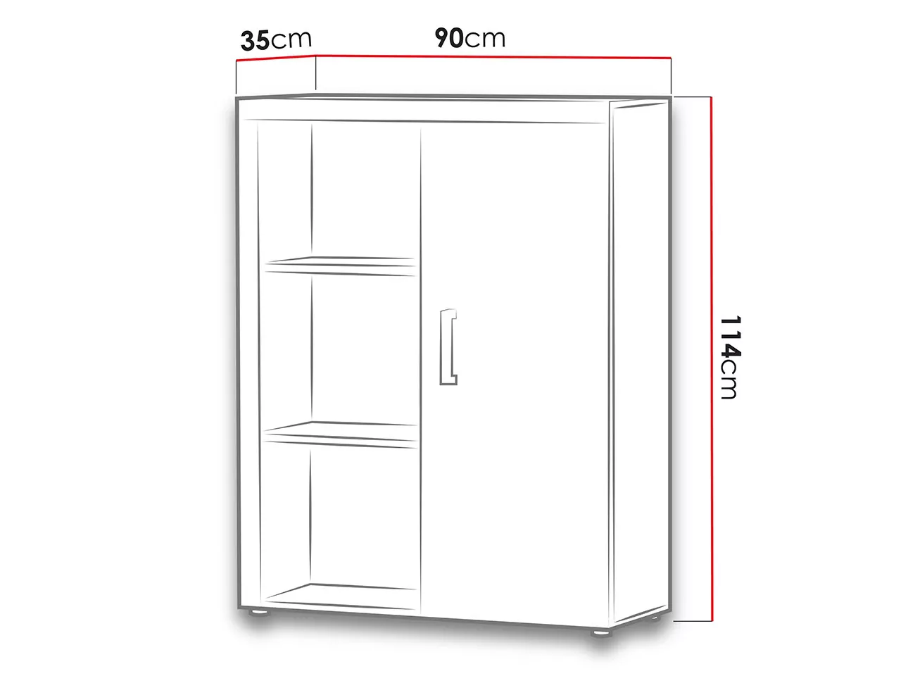 Konštrukcia komody je vyrobená z vysoko kvalitnej drevotrieskovej laminovanej dosky v matnej farbe. Dvierka sú vyrobené z MDF materiálu v lesklom prevedení.