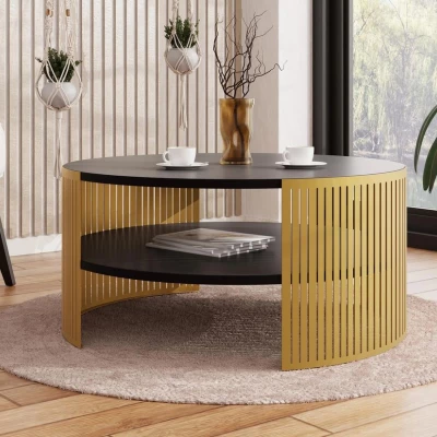 Konferenčný stolík REXIO - zlatý / molet čierny