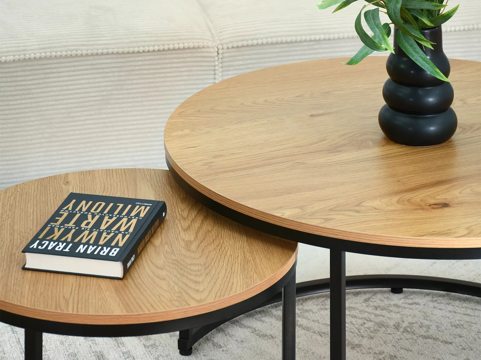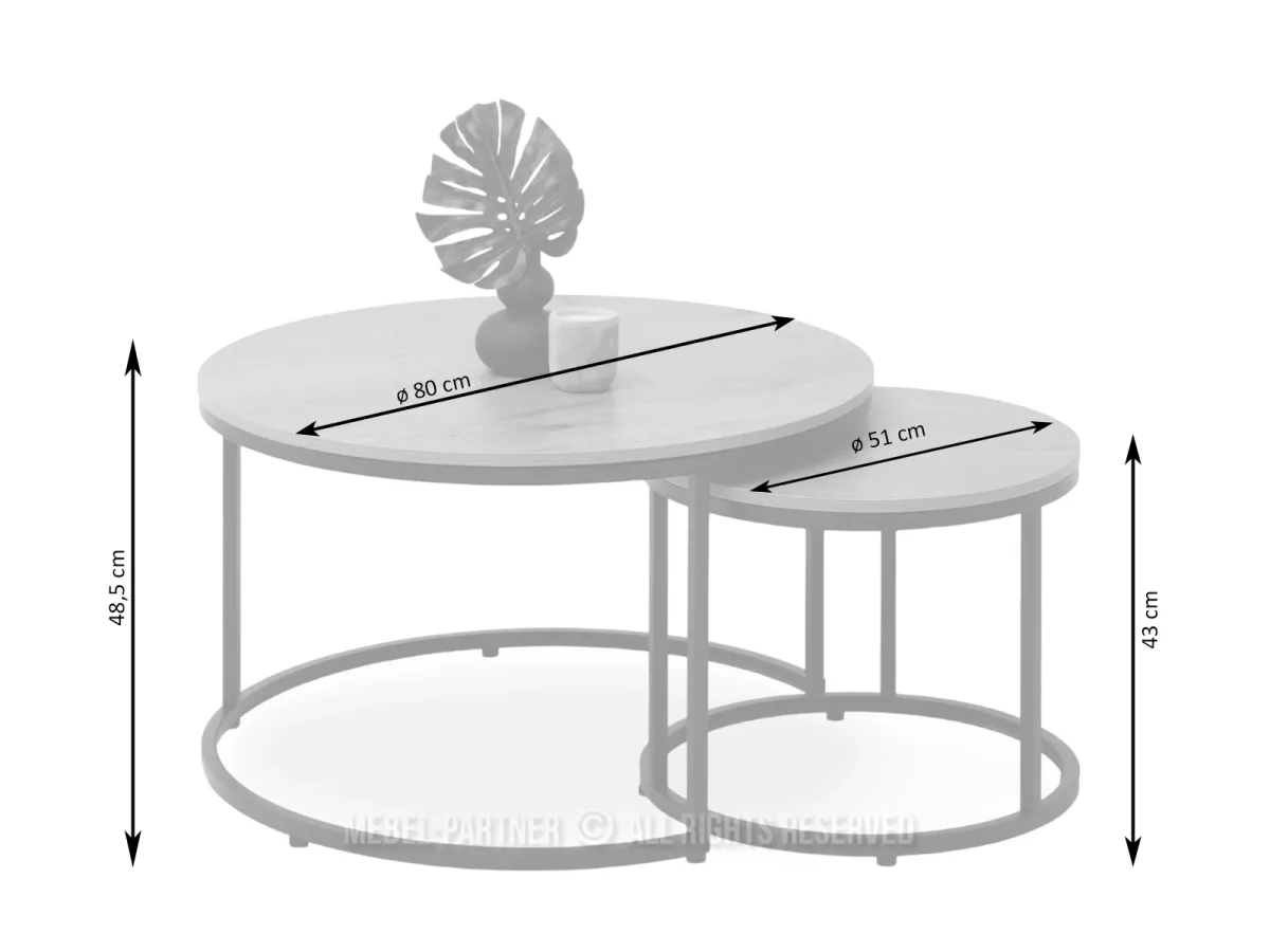 Set konferenčných stolíkov JACEK sa perfektne hodí k čalúnenému nábytku, ako miesto na odloženie ovládača, knižky alebo vystavenie dekorácie. Set okrúhlych stolíkov je možné kombinovať dohromady alebo používať zvlášť ako konferenčný a odkladací stolík.