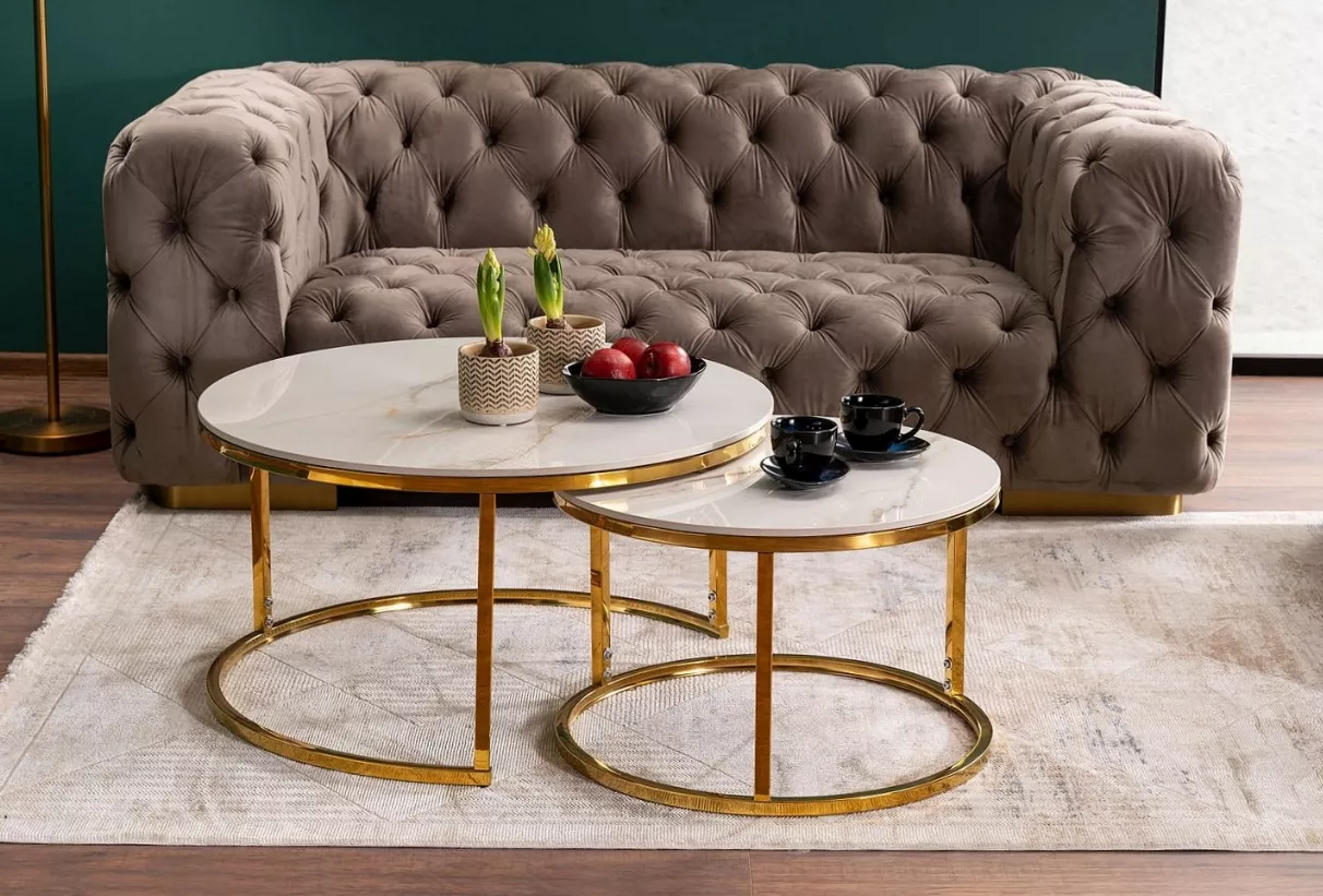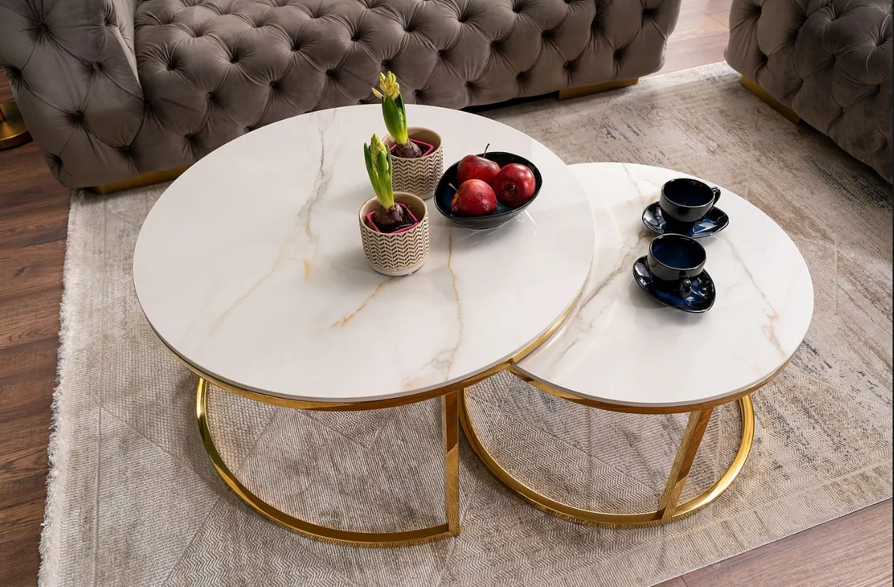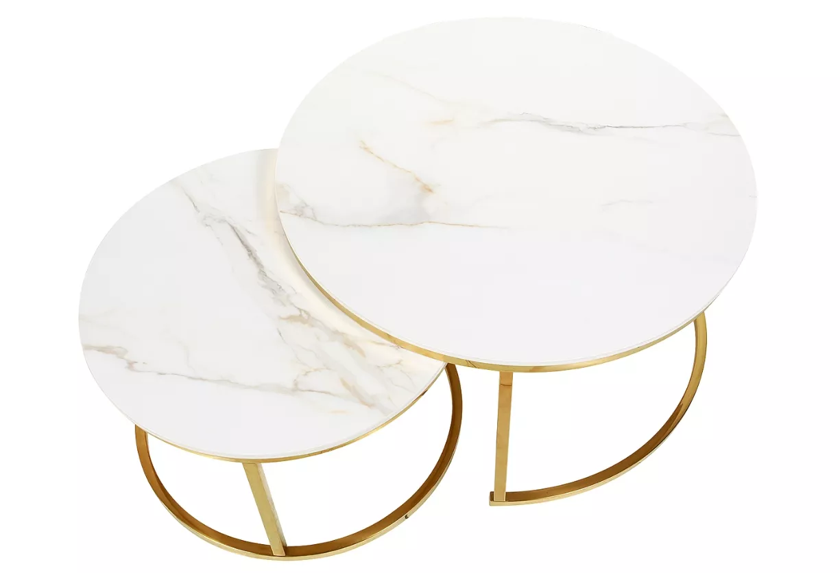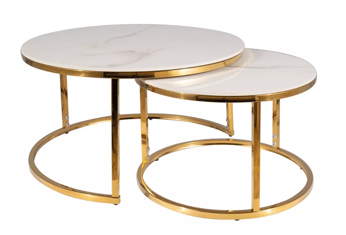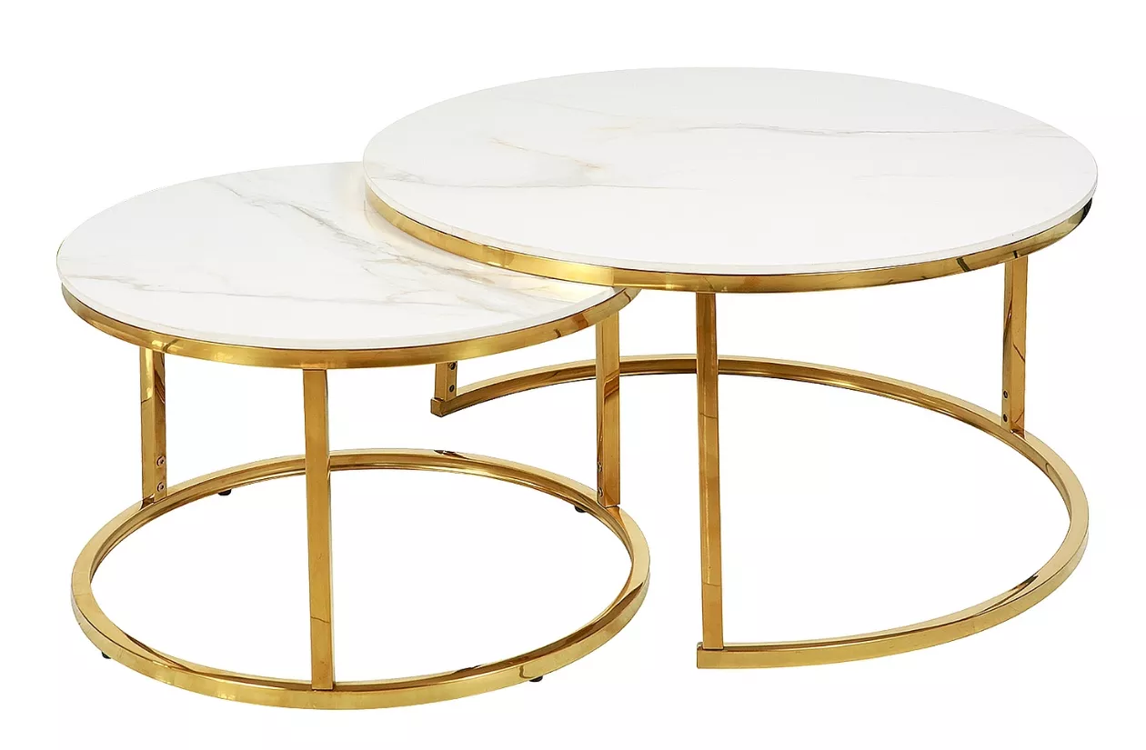 Set konferenčných stolíkov JONES 80 - biely / zlatý