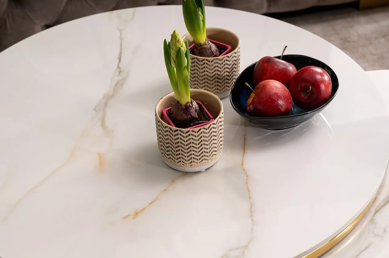 Set konferenčných stolíkov JONES sa hodí do všetkých moderných obývacích izieb. Zaujme predovšetkým štýlovou doskou s efektom mramoru.