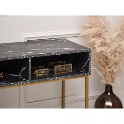 Konzolový stolík JIGME - zlatý / čierny mramor / čierny
