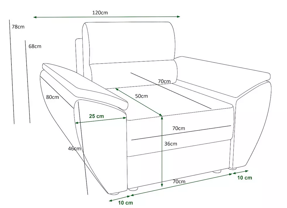 - celočalúnené: áno (potiahnuté rovnakou látkou aj na zadnej strane)