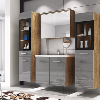 Kúpeľňová zostava YUKO 2 - gaštan / lesklá šedá + sifón ZDARMA