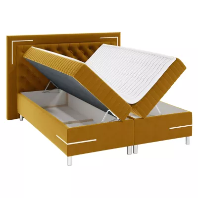 Dvojlôžková kontinentálna posteľ 200x200 BELIA 2 - horčicová + LED a topper ZDARMA
