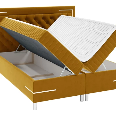 Elegantná kontinentálna posteľ BELIA s prešívaným čelom a integrovaným LED osvetlením premení vašu spálňu v luxusnú oázu pokoja. Praktický dvojkomorový úložný priestor vám umožní ľahko usporiadať posteľnú bielizeň či sezónne oblečenie. Pevná a odolná konštrukcia spolu so stredne tvrdým matracom a topperom zaistí ideálnu podporu pre váš spánok.