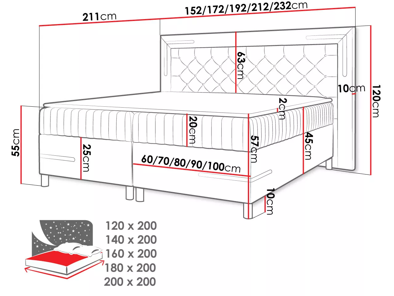 Elegantná kontinentálna posteľ BELIA s prešívaným čelom a integrovaným LED osvetlením premení vašu spálňu v luxusnú oázu pokoja. Praktický dvojkomorový úložný priestor vám umožní ľahko usporiadať posteľnú bielizeň či sezónne oblečenie. Pevná a odolná konštrukcia spolu so stredne tvrdým matracom a topperom zaistí ideálnu podporu pre váš spánok.
