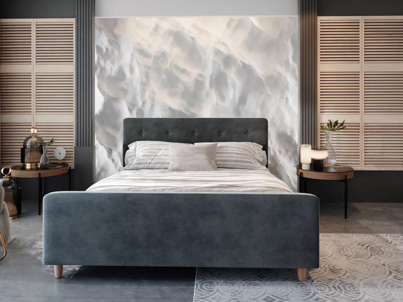 Manželská posteľ 180x200 NESSIE 1 s úložným priestorom sa hodí do všetkých moderných spální. Čalúnené čelo zamedzí poškriabaniu a zašpineniu steny. Posteľ disponuje úložným priestorom, ktorý je umiestnený pod vyklápacím roštom.