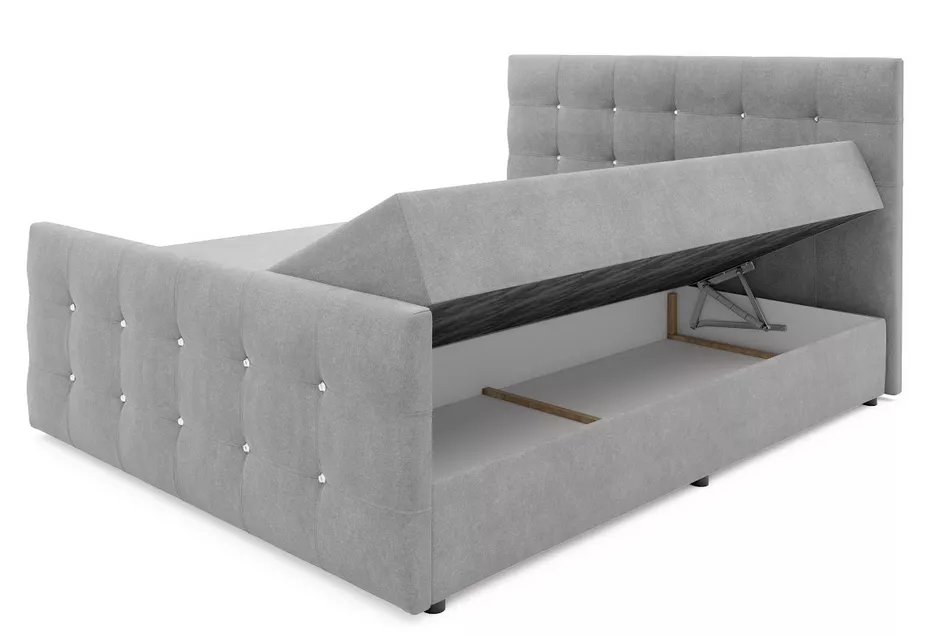 Manželská posteľ KAUR 2 sa hodí do všetkých moderných spální. Čalúnené čelo zamedzí poškriabaniu a zašpineniu steny. Posteľ disponuje 2 úložnými priestormi, ktoré sú umiestnené pod vyklápacími roštami.